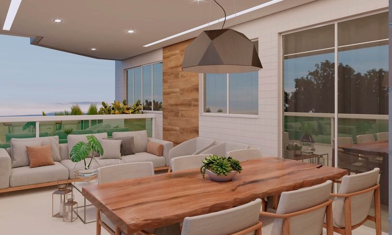- Varanda Gourmet com churrasqueira e bancada incluídas