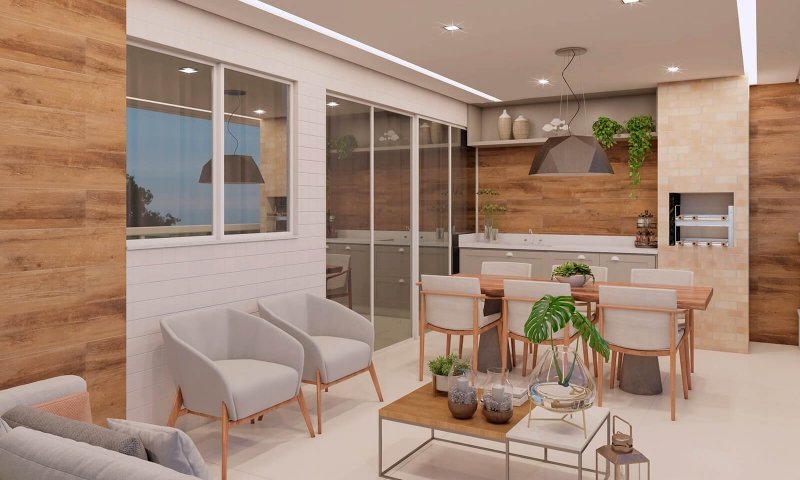 - Varanda Gourmet com churrasqueira e bancada incluídas